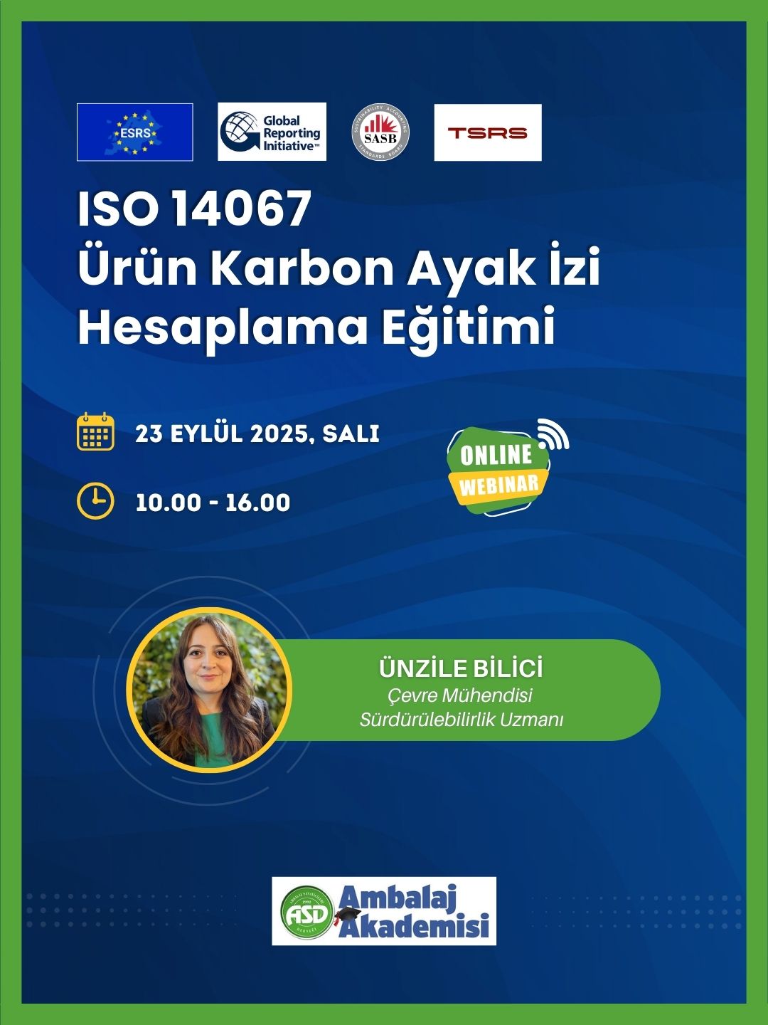 ASD Ambalaj Akademisi, sürdürülebilirlik alanında bilgi ve yetkinlikleri artırmaya yönelik eğitimlerine devam ediyor. 23 Eylül 2025 Salı günü düzenlenecek ISO 14067 Ürün Karbon Ayak İzi Hesaplama Eğitimi, online olarak saat 10:00 – 16:00 arasında gerçekleştirilecek.